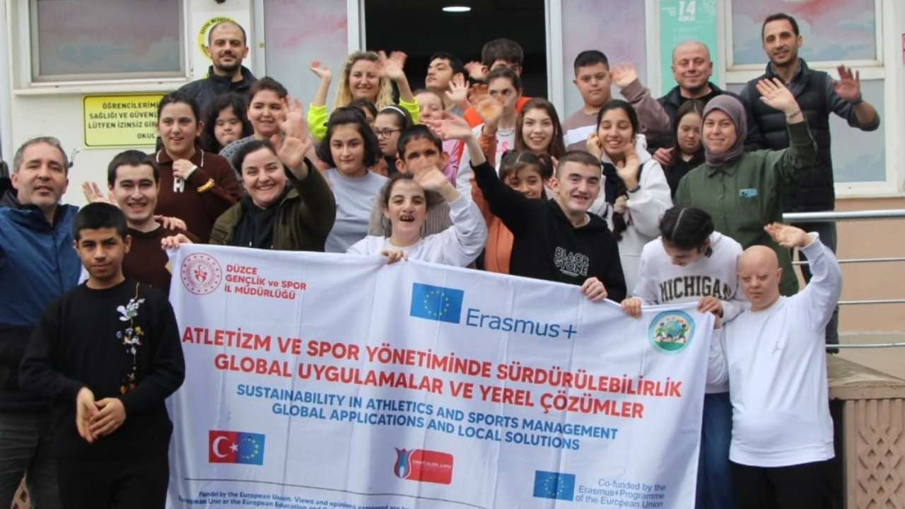 Düzce Gençlik ve Spor İl Müdürlüğü tarafından yürütülen ve Avrupa Birliği ile Türkiye Ulusal Ajansı tarafından hibe desteği almaya hak kazanan 2025-1-TR1-KA182-SPO-000298456 numaralı Erasmus+ KA182 “Atletizm ve Spor Yönetiminde Sürdürülebilirlik: Global Uygulamalar ve Yerel Çözümler” projesi kapsamında Yeşil Düzce Özel Eğitim Uygulama Okulu’nda uygulamalı temel atletizm etkinliği düzenlendi.