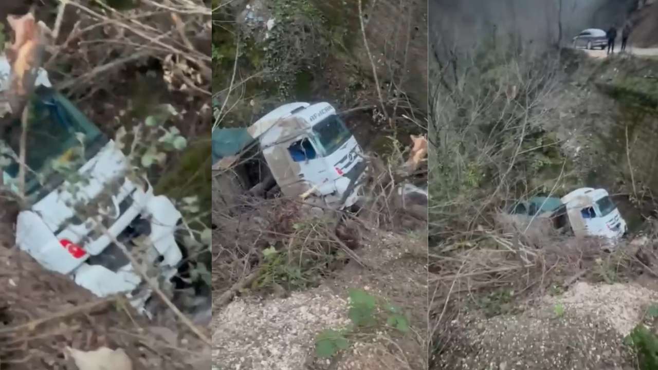 Düzce’nin Yığılca ilçesi ile Zonguldak’ın Alaplı ilçesini birbirine bağlayan yolda meydana gelen trafik kazasında bir tır yaklaşık 30 metre şarampole yuvarlandı.