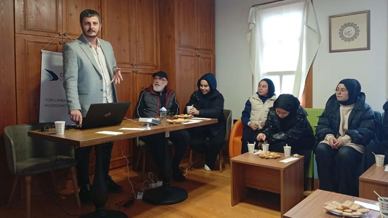 DMHA DÜZCE-Akçakoca Yukarı Mahalle’de bulunan ve Turizm Fakültesi Uygulama Birimi olarak hizmet veren Ömer Ağalar ve Hacı Şakirler Konağı’nda gerçekleştirilen programa; Toplumsal Katkı Koordinatörlüğü personeli, Akçakoca Nezahat Özdemir İmam Hatip Ortaokulu son sınıf öğrencileri, öğrenciler ile mahalle sakinleri katılım sağladı.Programın davetli konuşmacısı olan Düzce Üniversitesi Kaynaşlı Meslek Yüksekokulu Müdür Yardımcısı Öğr. Gör. Ali Kuru, “Ailede Afet Bilinci” başlıklı sunumunda afetlere hazırlıklı olmanın önemini aile perspektifi üzerinden değerlendirdi. Afetlerin yalnızca bireysel değil, aile bütünlüğü içerisinde planlanması ve yönetilmesi gereken süreçler olduğuna dikkat çeken Öğr. Gör. Ali Kuru, afet anlarında bilinçli, planlı ve koordineli hareket etmenin hayati önem taşıdığını vurguladı.Seminer kapsamında; deprem, sel ve yangın gibi afet türlerine karşı alınması gereken temel önlemler, aile içi görev dağılımının belirlenmesi, acil durum planı oluşturulması ve afet çantası hazırlanması konuları ayrıntılı şekilde ele alındı. Özellikle çocuklara küçük yaşlardan itibaren afet bilinci kazandırılmasının önemine değinen Öğr. Gör. Kuru, aile içinde düzenli olarak gerçekleştirilecek tatbikatların kriz anında panik düzeyini azaltarak doğru müdahaleyi kolaylaştıracağını ifade etti. Türkiye’nin afet riski yüksek bir coğrafyada yer aldığını hatırlatan Öğr. Gör. Kuru, afetlere karşı dirençli bir toplum yapısının ancak bilinçlendirme ve eğitim faaliyetleriyle mümkün olabileceğini belirtti.Program, Turizm Fakültesi Dekan Yardımcısı Dr. Öğr. Üyesi Arif Güngör tarafından, Aile Okulu Projesi’ne katkılarından dolayı Öğr. Gör. Ali Kuru’ya teşekkür belgesi takdim edilmesi ve toplu fotoğraf çekimi ile sona erdi