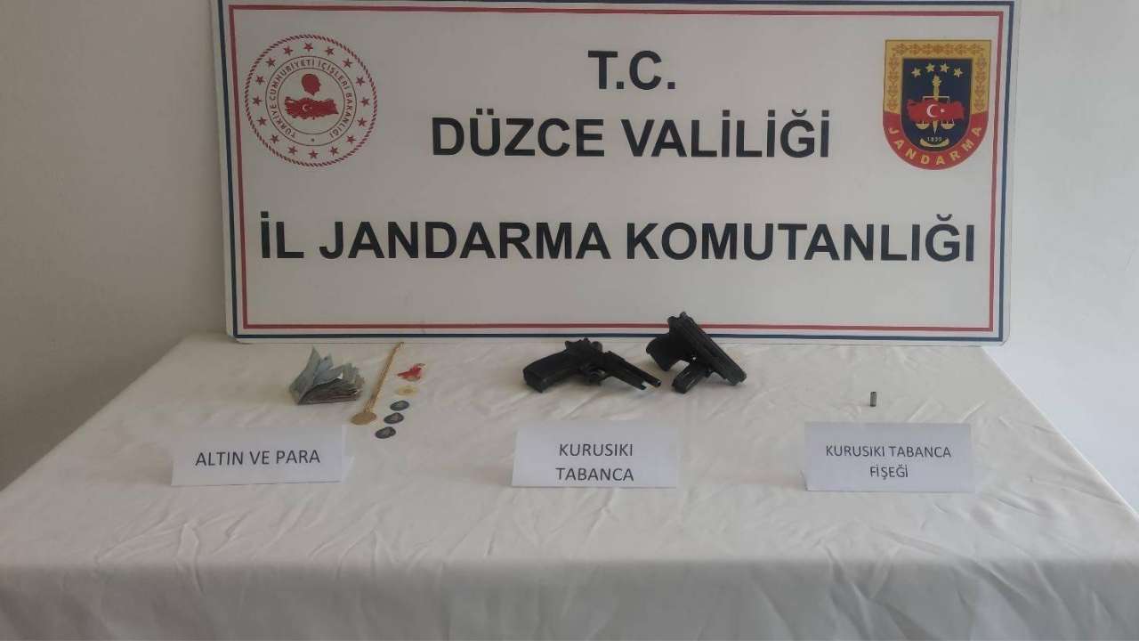Şüphelilerin ikametlerinde ve araçlarında 11 Mart 2026 tarihinde gerçekleştirilen aramalarda; 1 adet altın zincir, 1 adet beşi bir yerde altın, 3 adet gram altın, 1 adet yarım altın, 1 adet 0,25 gram altın, 1 adet alyans yüzük, 2 adet kurusıkı tabanca, 1 adet kurusıkı tabanca fişeği ve 1.485 TL nakit para ele geçirildi.